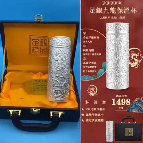 NT$1250 九龍百福銀杯 浮雕祥龍纏身 滿飾福紋蘊吉意 質感沉穩精緻 握之顯貴氣 自用贈禮皆得宜詳情 - 多功能切割片NT$899