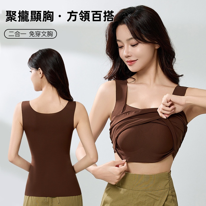 秋冬無痕雲朵裸感肌底衣保暖背心女固定杯美膚衣打底秋衣保暖背心